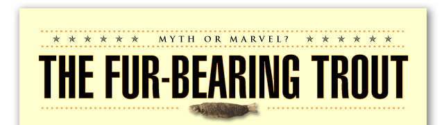 According to legend, the fur-bearing trout was first encountered by Europeans when Scottish settlers emigrated to Canada during the seventeenth century. One of them wrote home remarking about the abundance of "furried animals and fish" in the new land. Asked to provide more information about the furried fish, the settler duly sent home a specimen. If true, this legend would pretty much discredit the Colorado hair-tonic theory of the creature's origin.